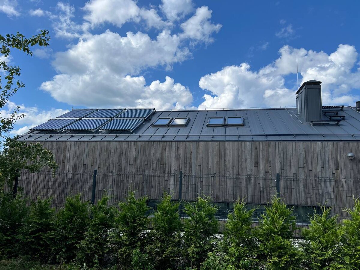 Мне кажется, что летом эти шесть «панелек» солнечных коллекторов на 100% обеспечивают горячей водой весь комплекс из двух таких гостевых домов.