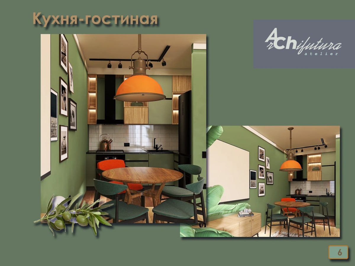 Этот прием применил и я-терракотовый стул в обеденной зоне.Таким образом внес и ноту движения и разнообразия,но и "обозначил место хозяина"....это конечно доля шутки,но с зерном правды.Лично я не люблю,когда даже кто то из близких,без моего разрешения занимают мое место за столом,уж простите,такой "домострой".
