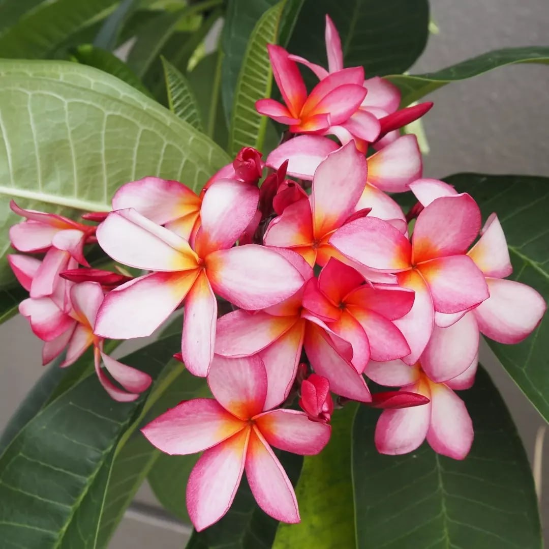 Плюмерия поражает своей красотой: крупные цветки в форме звезды с варьирующимися оттенками от белого и жёлтого до розового и красного