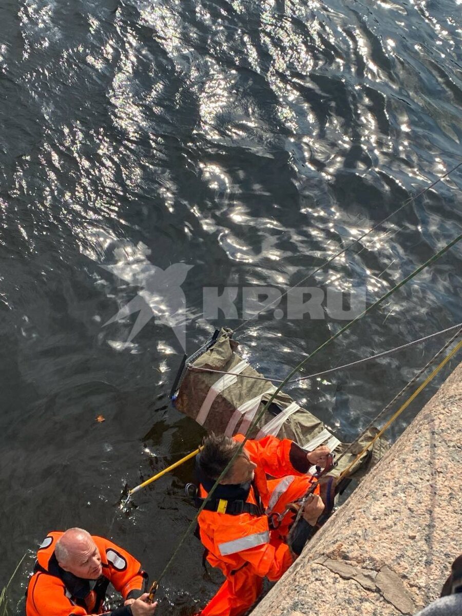 Спасатели пытаются вызволить бедолагу из гранитного плена целый день. Кошка Нюша не реагирует ни на еду, ни на знакомые голоса жителей дома, в котором она жила, ни на звуки мяуканья.