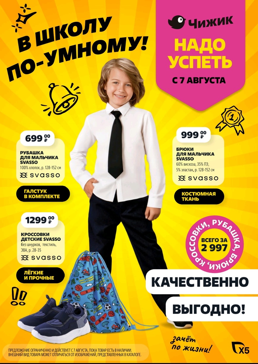В школу по- умному. Магазин Чижик . С 07.08. 25 года
