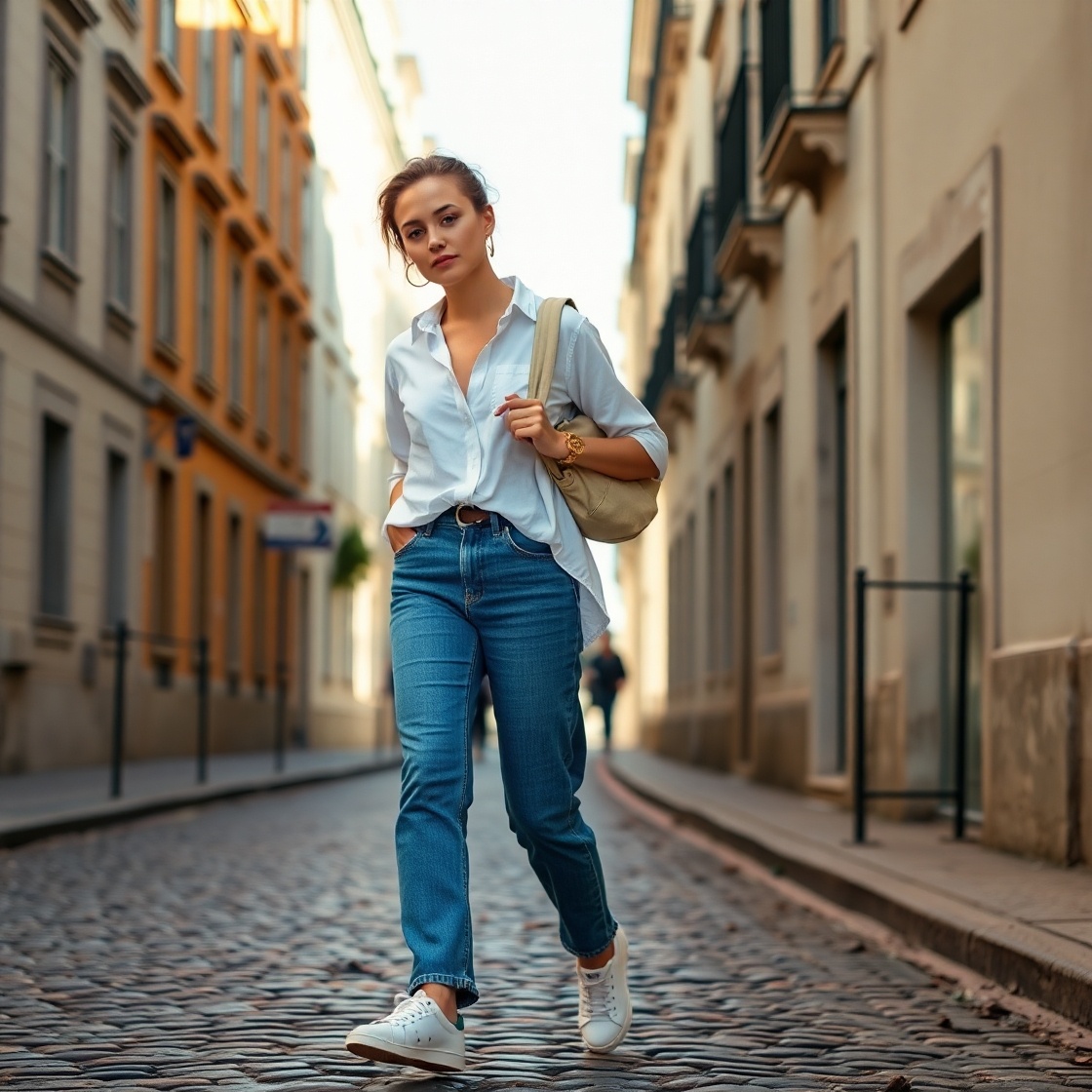 В мире моды есть один непреложный факт: универсальные вещи — основа стильного гардероба. Белая рубашка — именно такая вещь. Она может быть строгой, расслабленной, игривой или даже дерзкой — всё зависит от того, как ты её обыграешь. В этой статье покажу, как одна белая рубашка может работать на тебя в пяти разных стилях: от офиса до галереи современного искусства. Образ: белая рубашка + джинсы прямого кроя + белые кеды + лёгкий рюкзак 📌 Этот образ идеален для прогулок, кофе с друзьями и шопинга. Образ: белая рубашка + чёрные или серые широкие брюки + лоферы или лодочки + лаконичная сумка 📌 Простой, но собранный образ для работы и деловых встреч. Образ: белая рубашка + кожаная мини-юбка или брюки + каблуки + яркий клатч 📌 Идеально для вечеринки, свидания или ужина в ресторане. Образ: белая рубашка + оверсайз джинсы + бейсболка + массивные кроссовки + поясная сумка 📌 Подходит для фото, фестивалей и прогулок в городском ритме. Образ: белая рубашка + яркие винтажные брюки или юбка +