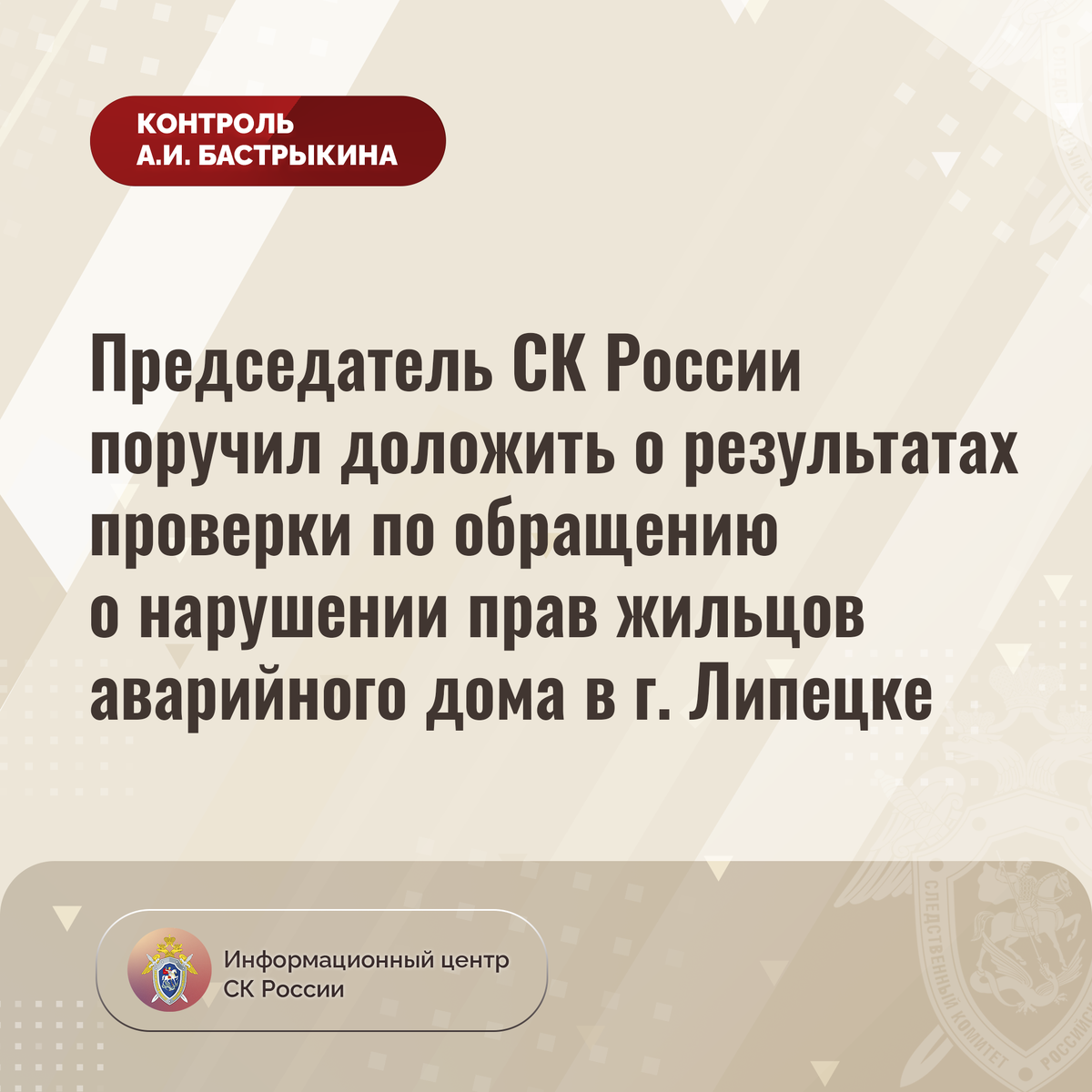 Председатель СК России поручил доложить о результатах проверки по обращению о нарушении прав жильцов аварийного дома в г. Липецке