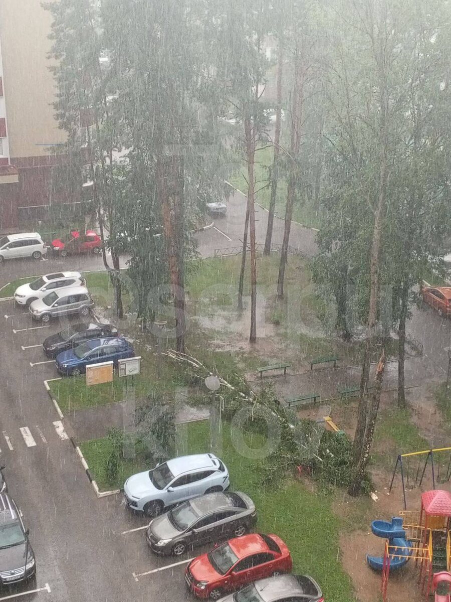 Береза обрушилась на детскую площадку в Большевике во время ливня. @serpukhov