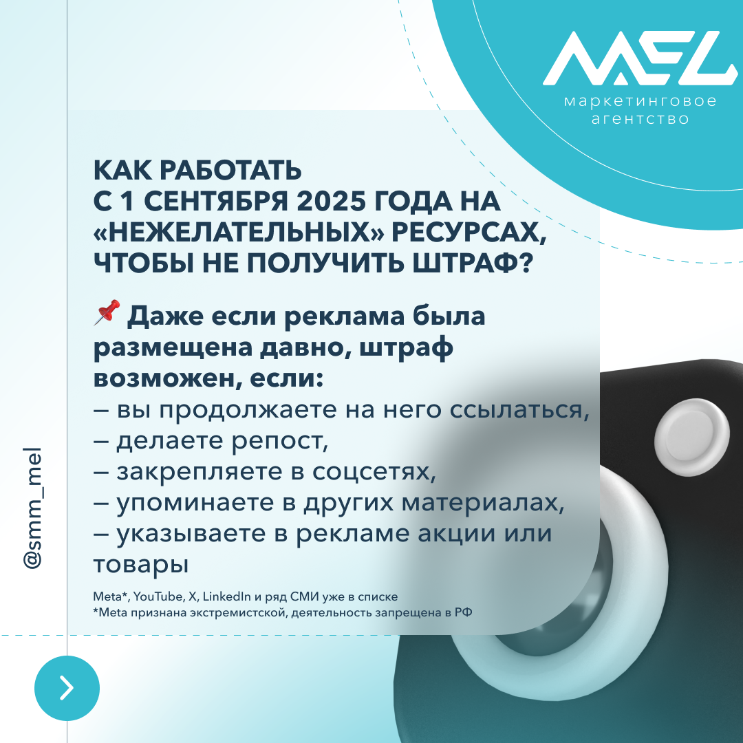 С 1 сентября 2025 года реклама на ресурсах нежелательных, экстремистских или ресурсах террористических организаций считается нарушением, даже если она была размещена раньше!