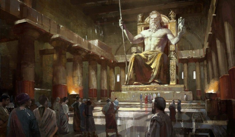 Олимпия. V век до нашей эры. Священная роща Альтис, где столетиями греки поклонялись богам, уже украшена храмами и сокровищницами. Но главный храм, посвященный Зевсу Громовержцу, кажется слишком скромным для владыки Олимпа. Жрецы шепчутся: как можно достойно восславить отца богов? И тогда рождается замысел, который навсегда изменит историю искусства. Фидий: скульптор, призванный богами. Афинский мастер Фидий к тому времени уже создал статую Афины Парфенос, украшавшую Парфенон. Его имя произносили с благоговением, а техника казалась божественной. Когда элейцы, хранители Олимпии, задумали создать статую Зевса, выбор пал на него. Работа началась в 430-х годах до н. э. В мастерской рядом с храмом Фидий собрал команду лучших резчиков, литейщиков и художников. Материалы везли со всей Греции: слоновую кость из Африки, драгоценный эбеновое дерево, тонкие листы золота. Но главным чудом стал не материал, а замысел. Зевс, восседающий на троне. Статуя достигала 13 метров в высоту