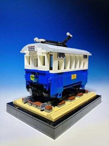Уличный трамвай от ArzLan — минимум деталей, максимум очарования 🚋 Голубенький трамвайчик с белой полосой — и всего один отрезок железнодорожного полотна! Тем не менее, модель выглядит потрясающе детализированной и атмосферной. Автору удалось передать дух старинного городского транспорта через лаконичное строение. Отличная идея для небольшой диорамы или украшения LEGO-города! Источник: Flickr Lego group