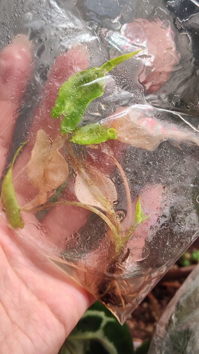 Мои дорогие трупики продолжают умирать, и в то же время делают вид что все ок. В одном пакете 60% растения разлагается и 40% живых тканей 🥲 Кстати, вара я не вижу в них. Мне не приехал ещё 3 клон - махарани альбо, очень жаль, что я его оплатила.