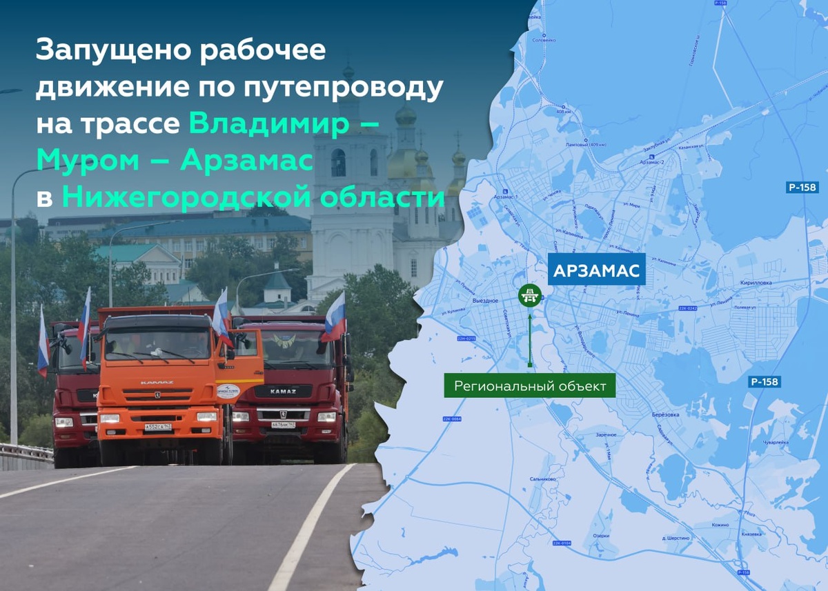 Дороги к местам паломничества в Нижегородской области становятся комфортнее Сегодня в районе посёлка Выездное в пригороде Арзамаса запустили рабочее движение по реконструированному участку регионалки Владимир – Муром – Арзамас. Отрезок обзавёлся новым путепроводом через железную дорогу 😎 В открытии участвовал глава Росавтодора Роман Новиков. Благодаря федподдержке работы удалось завершить на пять месяцев раньше планируемого срока. Это одна из самых популярных туристических дорог региона. Здесь находится знаменитый паломническо-туристический кластер с богатейшим архитектурным, культурным и духовным наследием, куда ежегодно стекаются сотни тысяч людей со всего мира. Раньше водителям приходилось стоять на переезде и ждать, когда проедет поезд, — фактически путь был единственным маршрутом из Арзамаса до Дивеева и Сарова. Путепровод полностью избавит от данной проблемы жителей и гостей этих городов. Наше ведомство также активно улучшает дорожную сеть региона. На севере от Арзамаса пр