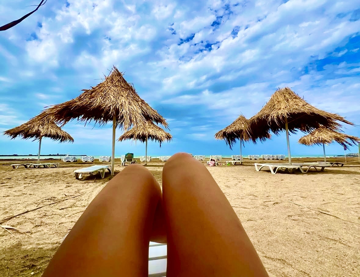 Маша расстелила полотенце между немецкой семьёй, которая заняла половину пляжа своими надувными единорогами, и русской парой, которая выясняла отношения с неприличной громкостью.