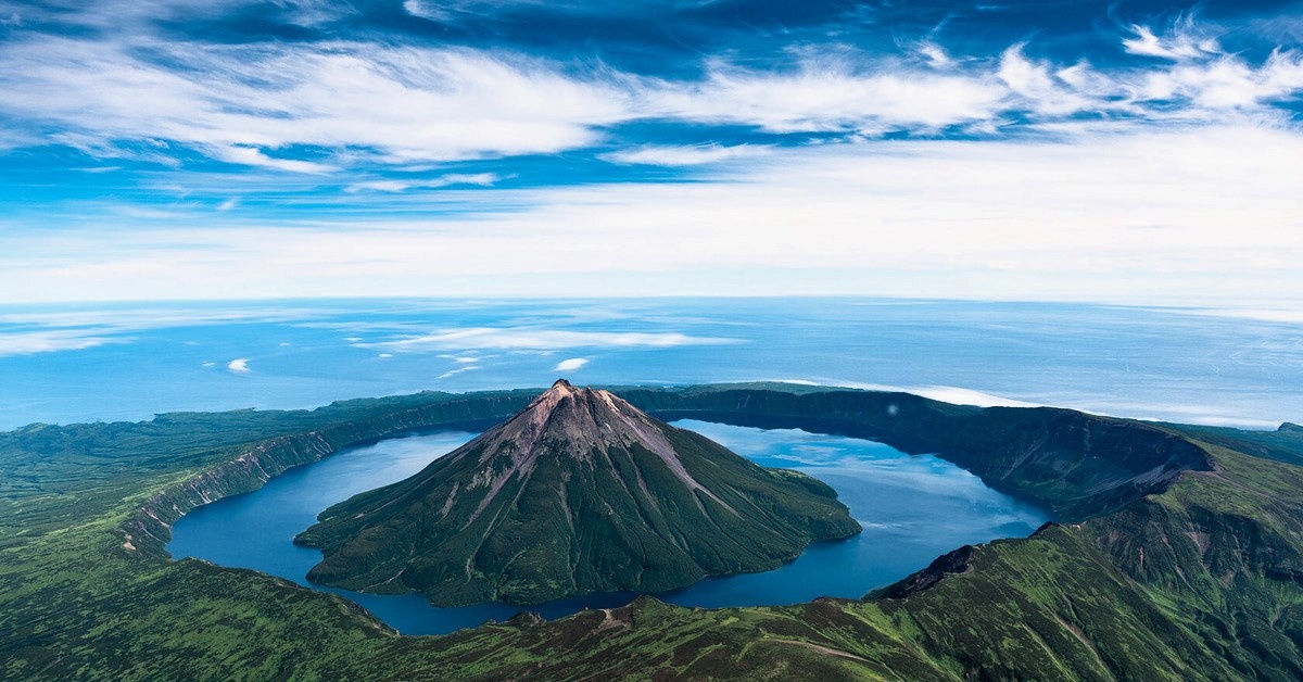 Курильские острова — это цепочка вулканических жемчужин, разбросанных между Охотским морем и Тихим океаном. Здесь природа создала пейзажи, которые кажутся декорациями к фантастическому фильму: дымящиеся вулканы, чёрные пляжи, колонии морских котиков и бескрайние водные просторы. Но среди всех этих чудес вулкан Креницына на острове Онекотан выделяется своей уникальностью. Это не просто вулкан — это «вулкан в вулкане», окружённый кольцевым озером, которое само по себе лежит в кальдере древнего вулкана Тао-Русыр. Высота пика — 1324 метра, а виды с его вершины заставляют сердце биться чаще: синее озеро, обрамлённое крутыми склонами, и бескрайний океан вокруг.