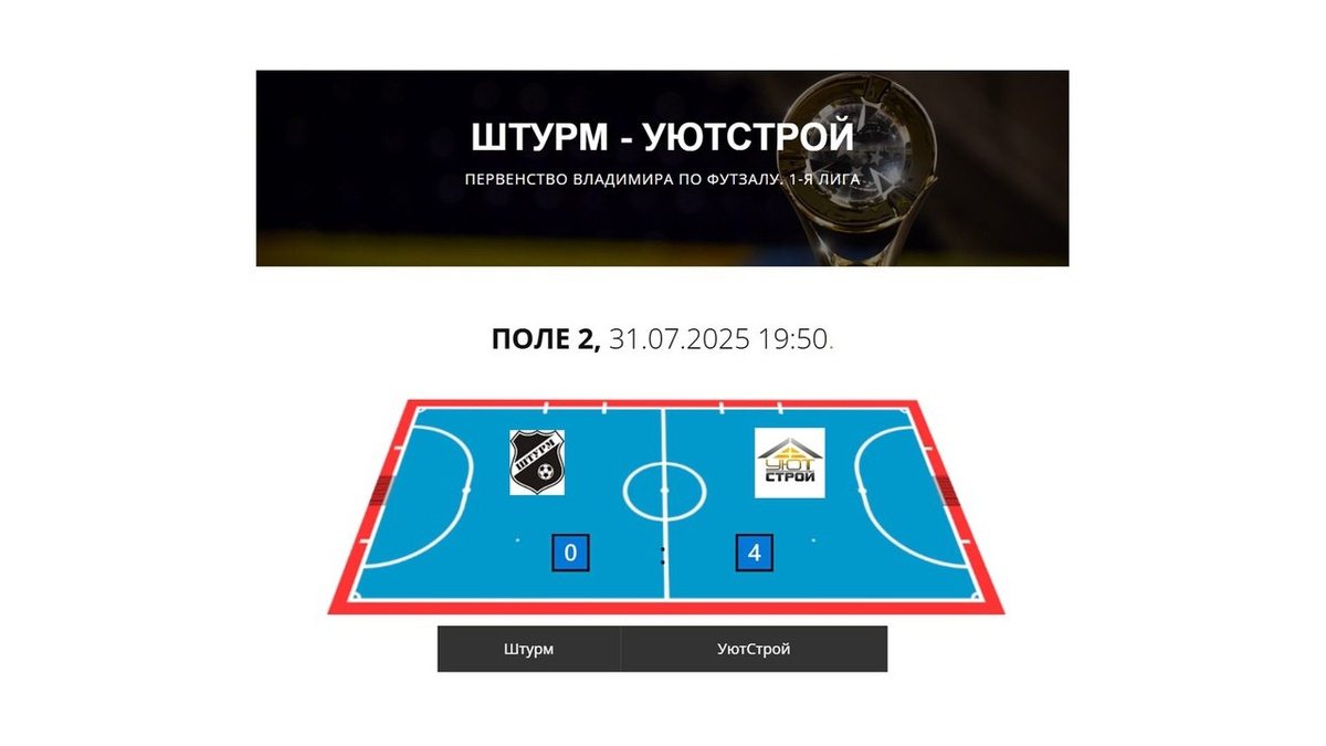 Первенство Владимира по футзалу. 1-я лига. 31.07.2025 г. Штурм - УютСтрой 0:4 (0:0) Обзор