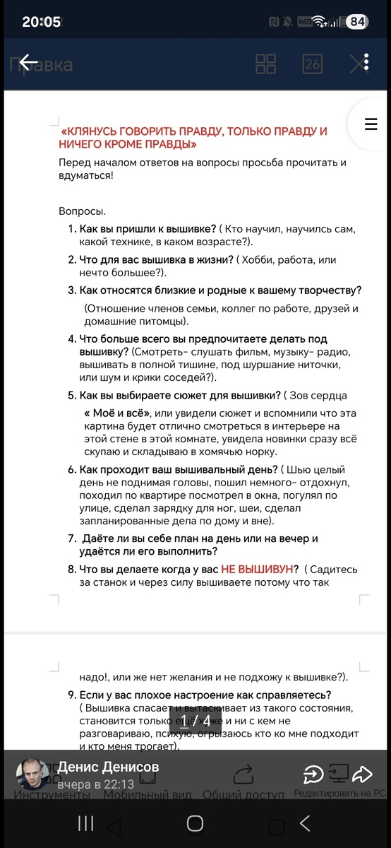 20 Понравилось ли мне отвечать на мой скромные вопросы, легко ли было отвечать или были какие-то трудности? (Почему и на какие вопросы?)