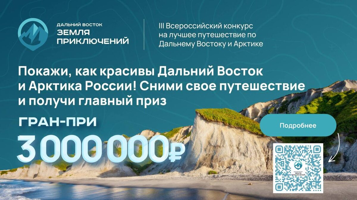 🔦3-й сезон конкурса «Дальний Восток — Земля приключений»! С 1 мая 2025 года по 15 января 2026 года каждый желающий может подать заявку и побороться за главный приз — 3 000 000 рублей. ❗️Номинации: ✅Пешее путешествие (пеший поход, веломаршрут, конный поход по дикой природе) ✅Водное путешествие (сплав по реке, морское, подводное путешествие, серфинг) ✅Зимнее путешествие (зимний поход, лыжный поход, путешествие на собачьих упряжках, конный поход, зимний веломаршрут, сноубординг) ✅Арктическое путешествие (пешее, водное или зимнее путешествие по Арктической зоне России). Путешествие должно быть совершено в период не ранее 1 мая 2023 года и не позднее 15 января 2026 года. Напомним, конкурс был запущен в 2022 году по инициативе полпреда ДФО Юрия Трутнева. Подробнее о правилах конкурса на сайте путешественникдв.рф. Положение о конкурсе ❗️ Дальний Восток — Земля приключений