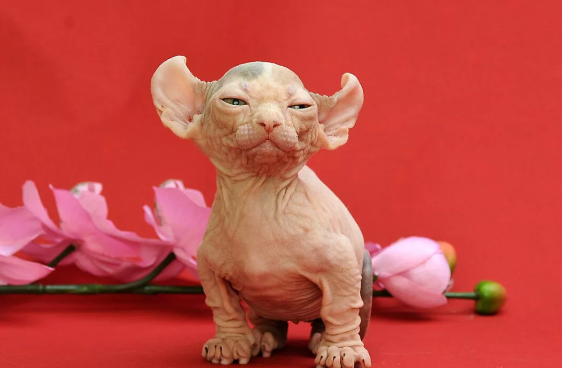 Кошка, которая в три килограмма уместила всю мощь харизмы, гиперконтроля и теплоты, которую ты даже не заслужил. Двэльф — это гибрид. Его вывели путём скрещивания сфинкса, манчкина и американского керла. То есть: лысая кожа, короткие лапки и уши, загибающиеся назад, как будто кошка услышала глупость — и ушами выразила своё мнение.