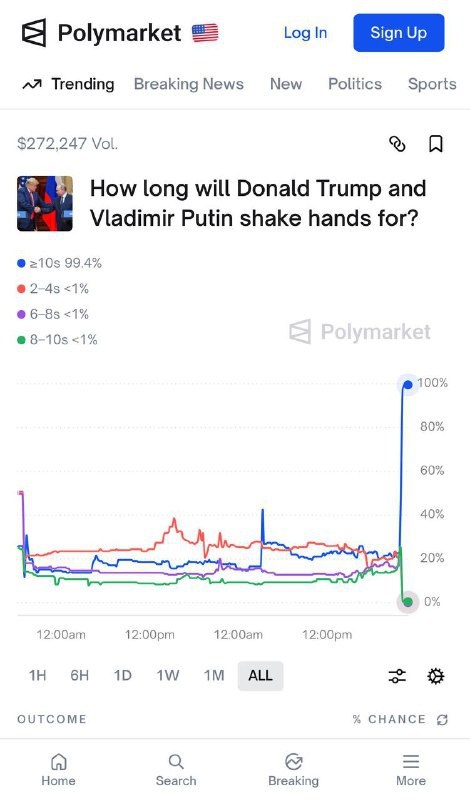 Просто представьте: американские букмекеры реально принимали ставки на то, сколько секунд продлится рукопожатие Путина и Трампа! 😂 Да-да