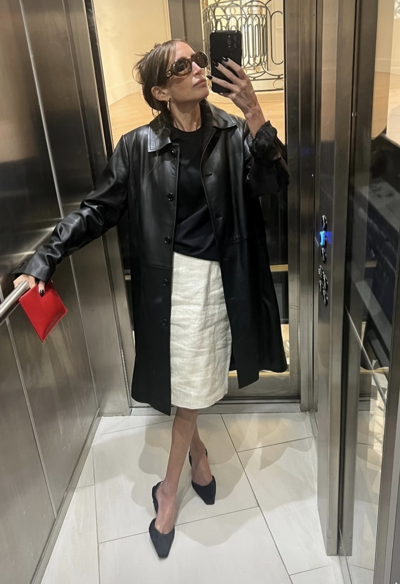 В преддверии холодного сезона я листала свою папку с сохраненками- хотелось каких то свежих идей для образов. И отметив в уме очередную белую юбку с тёплым верхом- я задумалась о том, что это вполне себе может быть альтернативой чёрной юбке не только летом, но и зимой. Если она из смеси шерсти и кашемира, то такая юбка и согреет и украсит своей нетривиальностью. Начнем с моей любимой осени.Посмотрите, какой классный образ для все еще плюсовой температуры выбрала француженка Хлоя Харуш, владелица бренда Loulou de Saison: кожаный плащ разбавляет своей дерзостью классический базовый комплект из белой юбки и чёрного джемпера. А этот красный клатч как акцент просто деталь, но которая собирает весь образ. А это блоггерка из Лондона Рикке Крефтинг показывает сочетание трендовой шелковой сливочной юбки с кожаным бомбером - очень крутое контрастное сочетание гладкого прохладного шелка и тяжёлой теплой кожи. Летом белые юбки могут быть прямыми или силуэта колокол. И прекрасно подойдут для офиса