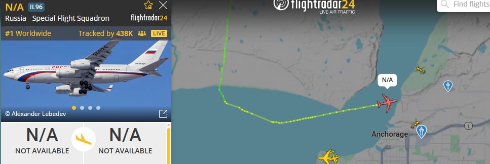 Самолет Владимира Путина на подлете к военной базе в Анкоридже, следует из данных сервиса Flightradar