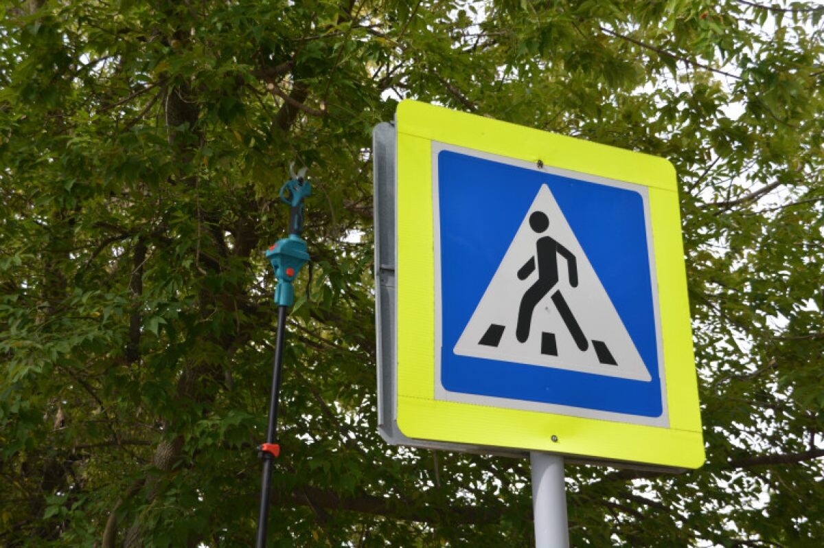 В Иванове дорожные знаки около школ освобождают от веток деревьев