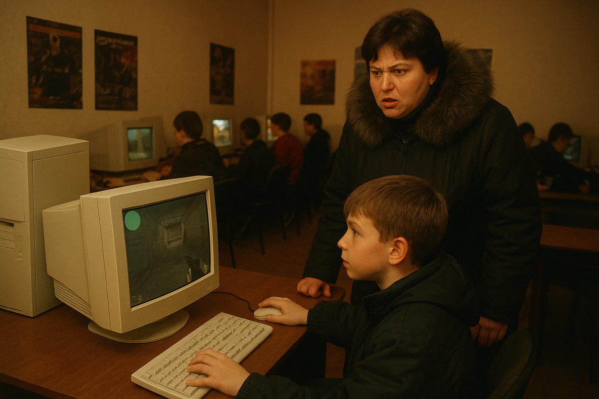 А где брали деньги школьники? Только то, что давали на обед. Многие экономили: вместо школьной столовой — часик в CS. Были дети, которые на уроки и вовсе не ходили, но родители всё равно рано или поздно узнавали про прогулы. Тогда в клуб врывались разъярённые мамы и словно спецназ выламывали ногой двери, хватали за ухо свое чадо и тащили его на улицу под дружный смех всех присутствующих: