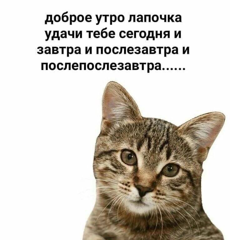 Доброго субботнего утра дорогие подписчики и гости моего канала . С утра пораньше хочу вас порадовать подборкой мемов с котиками. Никто не дарит так много позитива, как забавные картинки с котиками. Это лучшее лекарство от хандры. Смотрим и улыбаемся, ведь улыбка и смех продлевает жизнь. Понравилась подборка мемов ? Ставьте лайк комментируйте и подписывайтесь на мой канал . До новых встреч друзья .