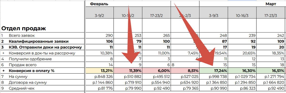 - Конверсию по квалифицированным заявкам.