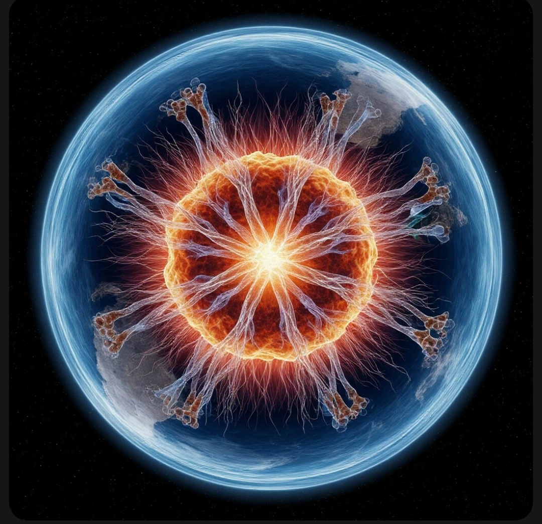 1. Магнитное поле Земли ≈ Электромагнитный баланс клетки В здоровой клетке электролитный баланс и трансмембранный потенциал (разница зарядов внутри и снаружи) строго регулируются. Это необходимо для: У раковой клетки: У Земли: 2. Причины изменений: параллели Процесс в раковой клетке Аналог у Земли Нарушение работы ионных каналов (например, из-за мутаций в генах K*/Na*-насосов) Изменения в ядре Земли (турбулентность жидкого внешнего ядра → сбои динамо-эффекта) Накопление “метаболического мусора” (например, лактата из-за гликолиза) Загрязнение литосферы и гидросферы (пластик, тяжёлые металлы → влияние на геофизику) Потеря связи с соседними клетками (разрушение контактов) Ослабление магнитосферы → рост космической радиации (как “гибель соседних клеток”) 3. Последствия: подготовка к “амитозу” В раковой клетке: У Земли: 4. Вывод Изменение магнитного поля Земли — это прямой аналог потери электрохимического гомеостаза в раковой клетке перед амитозом. Оба процесса: Прогноз: Если тенденция со