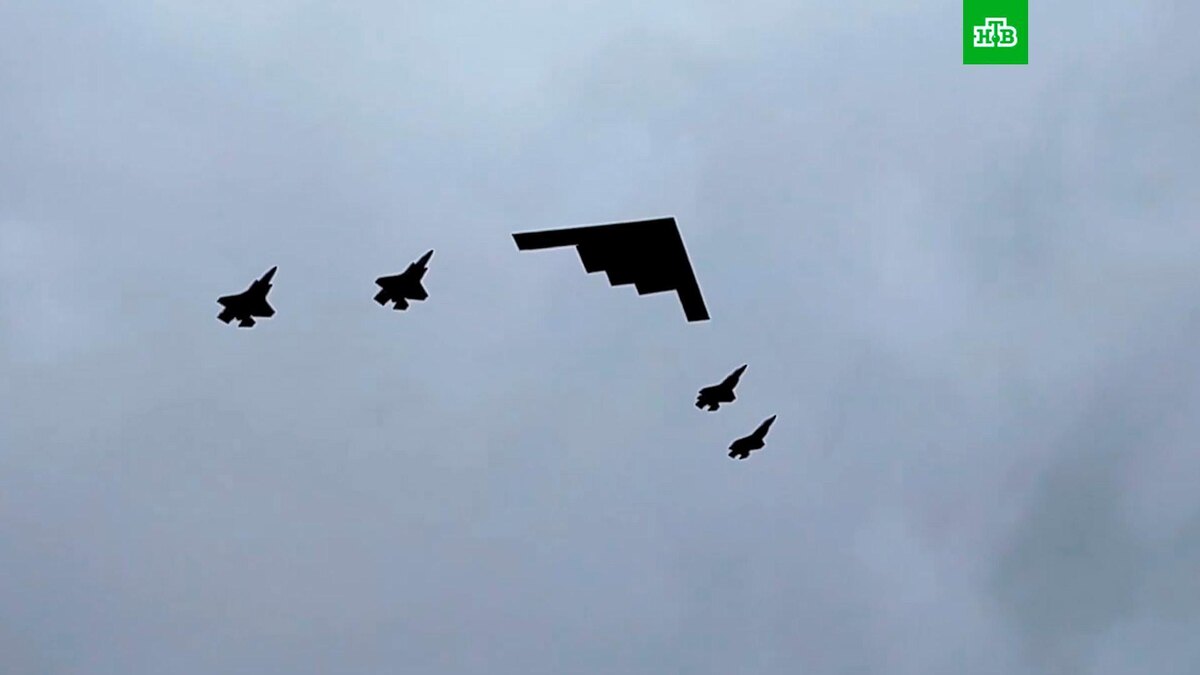 [ Смотреть видео на сайте НТВ ] Стратегический бомбардировщик B2 Spirit пролетел в небе Аляски во время встречи Владимира Путина и Дональда Трампа. B2 Spirit сопровождали четыре истребителя F-22. Самолеты пролетели над аэропортом в Анкоридже в тот момент, когда Путин и Трамп шли по красной дорожке для того, чтобы сделать совместное фото на специальном постаменте. Ранее на военной базе Элмендорф — Ричардсон в городе Анкоридж началась встреча Владимира Путина и Дональда Трампа. Беседа проходит в формате три на три. Вместе с Трампом в ней участвуют госсекретарь США Марко Рубио и спецпредставитель американского лидера Стивен Уиткофф. Владимира Путина сопровождают помощник президента Юрий Ушаков и министр иностранных дел Сергей Лавров. По итогам встречи Путин и Трамп пообщаются с журналистами. НТВ покажет трансляцию совместной пресс-конференции. [ Смотреть видео на сайте НТВ ]