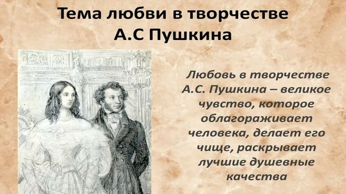 Любовь занимает особое место в творчестве Александра Сергеевича Пушкина, являясь одной из самых значимых и многогранных тем его поэзии. Через призму любовных переживаний поэт раскрывает глубину человеческой души, исследует природу чувств и их влияние на личность. В юном творчестве Пушкина любовь предстает как романтическое чувство, полное восторженности и идеализации. Поэт воспевает красоту возлюбленной, используя яркие образы и возвышенные метафоры. Характерные черты ранней любовной лирики: В лицейский период Пушкин создает ряд стихотворений, посвященных первой любви. Эти произведения отличаются: В петербургской лирике тема любви приобретает новые оттенки. Поэт исследует различные аспекты любовного чувства: Период ссылки в Михайловском стал временем глубокого осмысления темы любви. Пушкин создает ряд шедевров любовной лирики, в которых: В позднем творчестве Пушкин приходит к пониманию любви как: В творчестве Пушкина можно выделить несколько ключевых мотивов: Пушкин обращается к разли