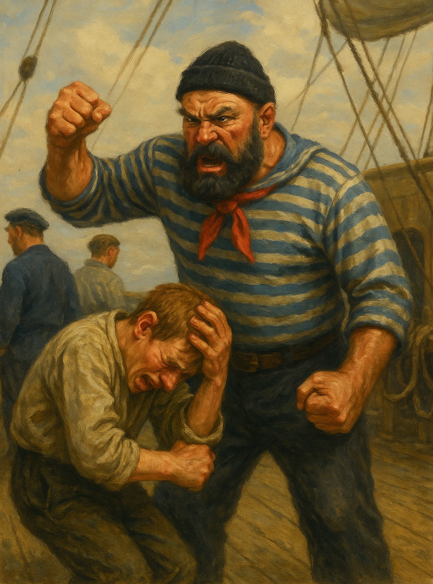 На этот раз матросы решили, что не стоит более испытывать судьбу и терпение боцмана. И поспешили поскорее убраться с палубы.