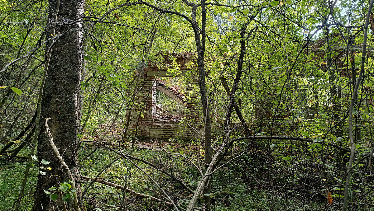 Ну что, друзья, снова приветствую вас. Сегодня, 18 августа, я решил устроить себе тихий день. Взял корзинку и отправился в лес в сторону Светогорска — думал, наберу немного черники, а если повезёт, то и грибов найду. С ягодой повезло, а вот грибной бог в этот день был не на моей стороне. Но лес приготовил для меня другую находку. Такую, от которой до сих пор немного не по себе. Я зашёл довольно далеко, километра на четыре вглубь от знакомых троп. И там, среди вековых елей, куда не пробивался солнечный свет, я наткнулся на него. Это был не старый финский хутор с его гранитными фундаментами. Это было что-то другое. Кирпичный остов дома, явно советской постройки. Картина была удручающая. Крыша давно провалилась, пустые оконные проёмы смотрели на мир, как глазницы черепа. Одна из стен обрушилась, открывая внутреннее пространство всем ветрам и дождям. Я подошёл ближе. В канавах по периметру валялись ржавые листы железа — видимо, остатки кровли. И главный вопрос повис в воздухе, пл