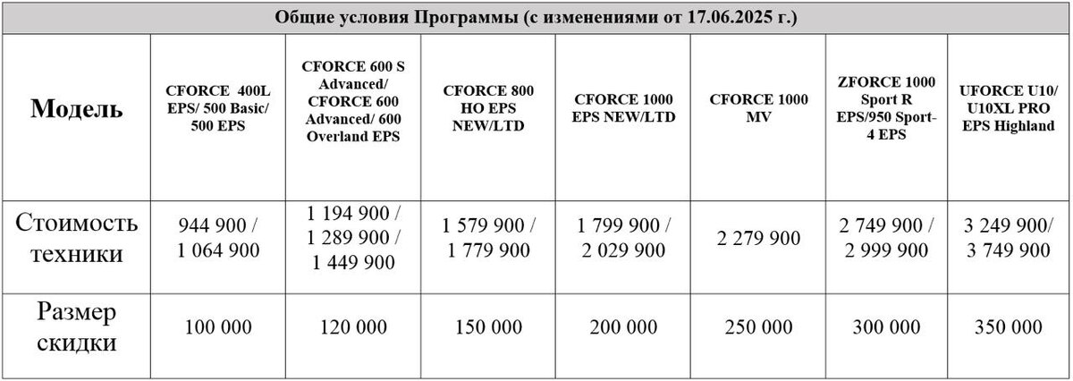 Напоминаем всем любителям квадродвижения, кто задумался о смене своего квадроцикла на новый CFMOTO, что сейчас это можно сделать с еще большей выгодой. Программа распространяется на приобретение новых квадроциклов ATV или мотовездеходов Side—by—Side CFMOTO теперь со скидкой от 100 000 до 350 000 руб.!