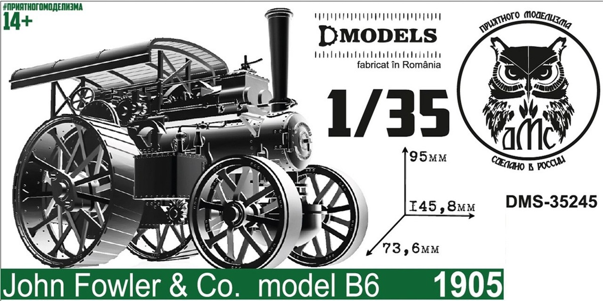 Кировская ДМС (denisssmodels) выпускает на 3D-принтере лицензионную модель разработки румынской D--Models - паровой трактор John Fowler & Co. model B6 1905 года в масштабе 1/35: John Fowler & Co. model B6 1905 (каталожный номер DMS-35245)