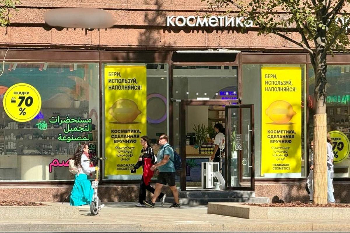 ходьбы от Кремля, в магазине российской косметики вывески и надписи дублируют арабскими буквами.