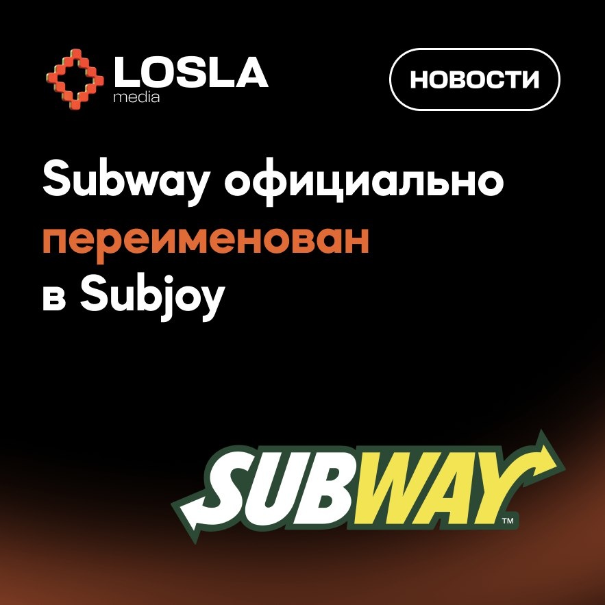 🌭 Subway официально переименован в Subjoy Об этом бренд заявил в своем пресс-релизе. Ранее ходили слухи, что сеть могут назвать Subboy, но к счастью или к сожалению этого не случилось. Главное, что сэндвичи остались теми же 😭 🔸 LOSLA MEDIA