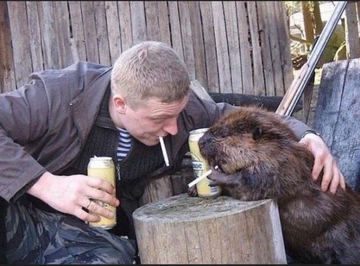 Бобр с сигаретой в зубах — это пик внутренней свободы. Он всё видел. Он строил, любил, верил... а потом пришёл этот парень с двумя банками "Жигулёвского" и сказал: "Серёг, хватит грызть деревья, давай поговорим по душам."