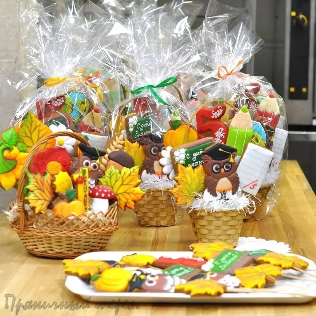 Друзья, подготовила для вас подборку не очень сложных, но при этом красивых и интересных пряников ко Дню Знаний, которые точно понравятся вашим заказчикам 👩🏫 ✔️Из плоских пряников несложно сделать набор, букет или композицию в корзинке из тематических пряников - карандаш, цифра 5, школьная доска с надписью, лист с оценками (конечно, с пятёрками), фрукты. Смотрите примеры и варианты на фото. ✔️Также отлично смотрятся букетики с плоскими цветами в корзинках или в кашпо. ✔️Из объëмных пряников можно выбрать технологичные варианты домиков и дополнить их единичными пряниками с пожеланиями или именами всех учеников класса. Пример такого подарка тоже есть на фото! ✔️А также можно сделать объëмный символ педагогической мудрости и ценности знаний - сову! Такой пряник мы делали на бесплатном интенсиве по осенним пряникам в прошлом году. 😉А какие пряники чаще всего заказывают у вас - одиночные, наборы, букеты?