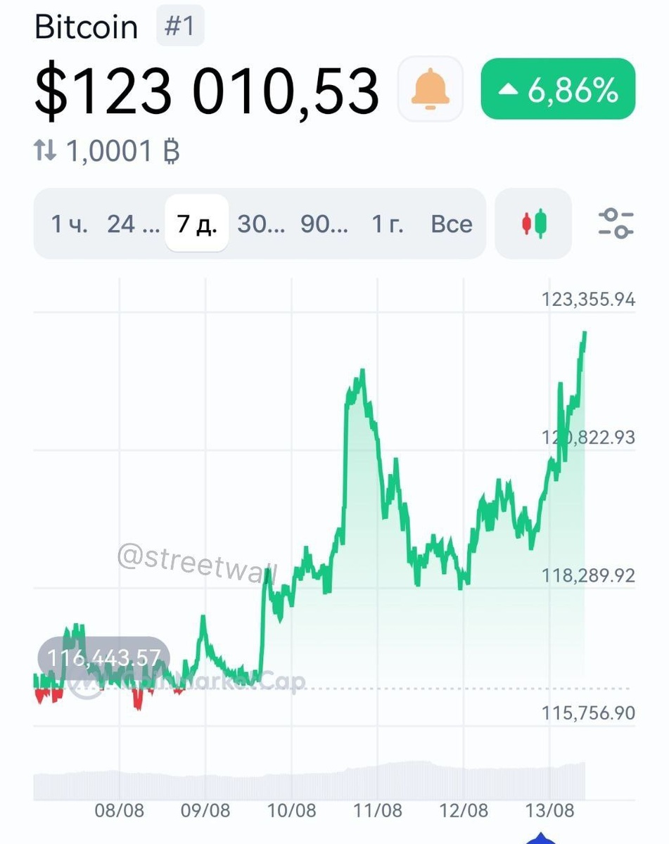 Биткойн достиг $123 000, не дойдя $100 до рекорда. Недавно биткойн вырос до $123 000, всего на $100 меньше исторического максимума. ────────── ⚡️Важные новости – без лишнего шума!⚡️ Подпишись на канал и получай только суть: оперативно, чётко, по делу! 👉 ИнфоСплетник | @infospletnik