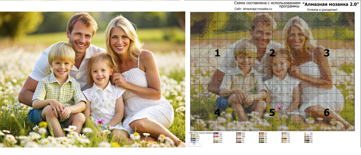 1. Базовая версия для тех, кто хочет без мороки превратить фото в готовую схему для алмазной мозаики: программа подберёт цвета под палитру стразов производителя, соберёт под круглые или квадратные стразы, посчитает, сколько штук каждого цвета, разложит всё по листам для печати и даст понятную легенду. В итоге вы заранее видите объём работы и можете заказать материалы прямо из программы — без всяких сложностей.