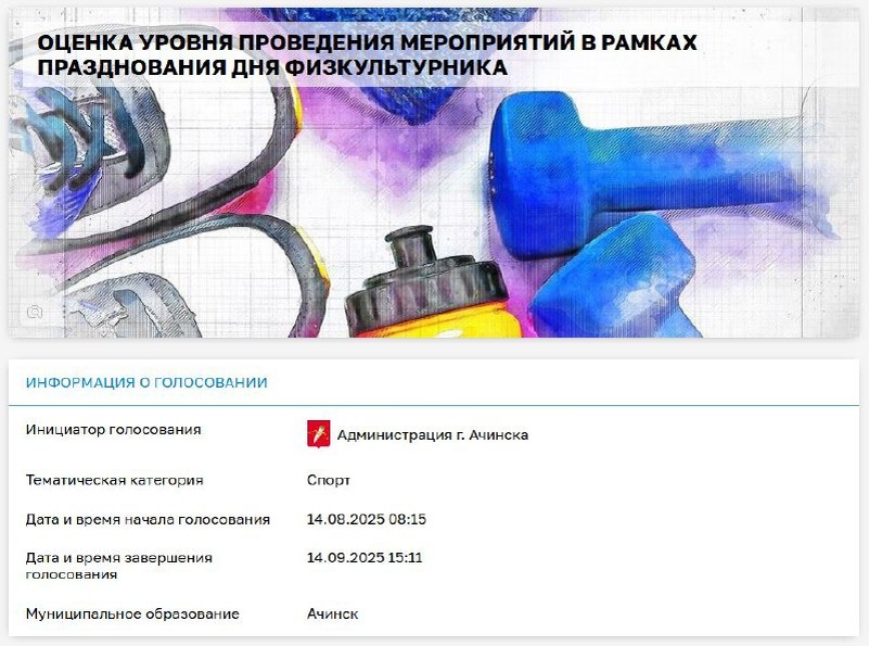 Приглашаем принять участие в опросе об оценке уровня проведения Дня физкультурника⚽️🚴♂️ На платформе «Активный гражданин» стартовал опрос об уровне проведения мероприятия в рамках празднования Дня физкультурника. Высказать своё мнение можно пройдя по ссылке: https://24ag.ru/voting/details/h/5bd2945d-fdc5-46cb-a11d-707ece19a1e6?locality=2