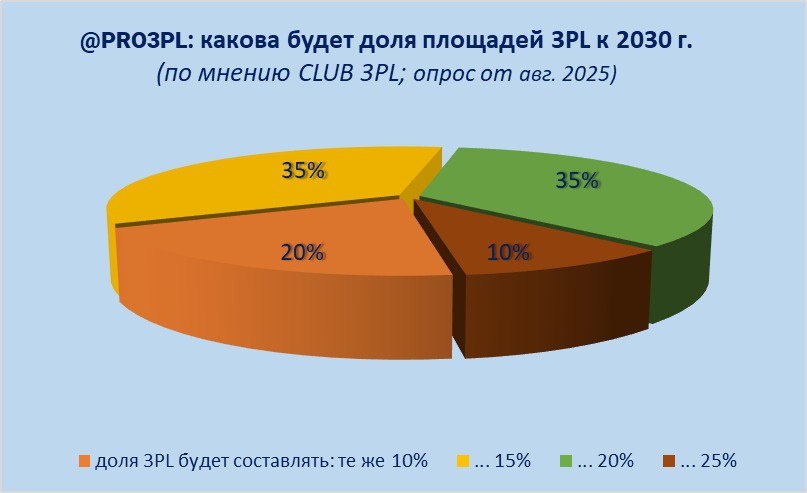 ΠΠ°ΠΊΠΎΠ² Π²Π°Ρ ΠΏΡΠΎΠ³Π½ΠΎΠ· Π΄ΠΎΠ»ΠΈ ΡΠΊΠ»Π°Π΄ΡΠΊΠΈΡ ΠΏΠ»ΠΎΡΠ°Π΄Π΅ΠΉ ΠΏΠΎΠ΄ ΡΠΏΡΠ°Π²Π»Π΅Π½ΠΈΠ΅ΠΌ 3PL-ΠΊΠΎΠΌΠΏΠ°Π½ΠΈΠΉ ΠΊ 2030-ΠΌΡ Π³ΠΎΠ΄Ρ?