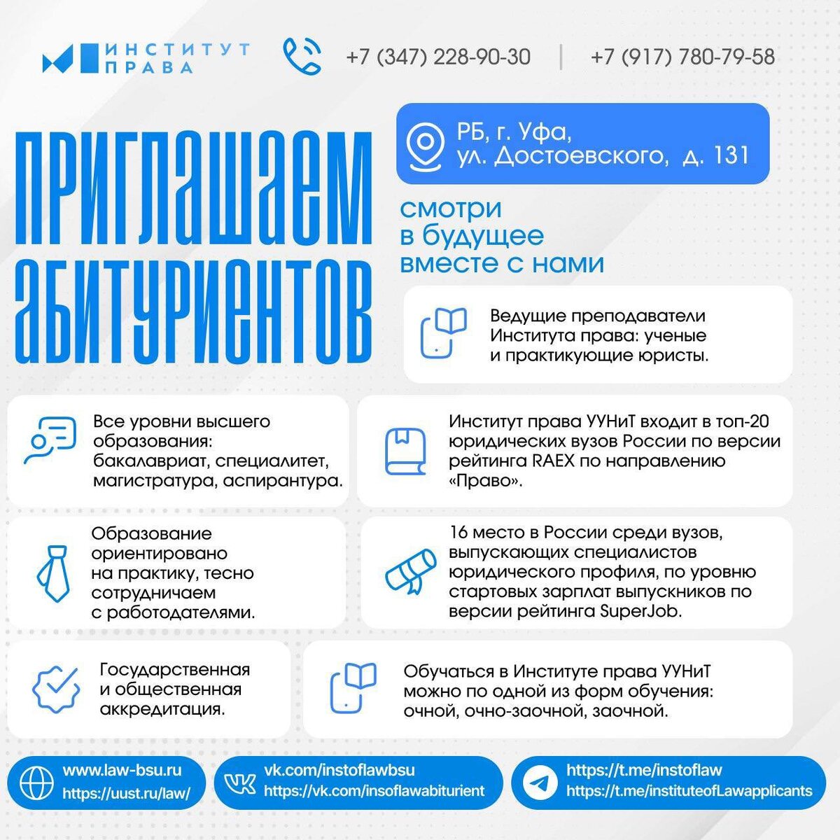 Напоминаем, про важные даты для поступления в Институт права 💙