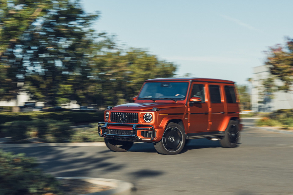 Столь высокий и относительно узкий автомобиль поначалу не побуждает водителя к скоростному прохождению поворотов. Но стоит как следует разогнаться, и вы удивитесь его самообладанию. Это заслуга новой системы AMG Active Ride Control, эксклюзивной опцией для G63. Вместо стабилизаторов поперечной устойчивости в нашем автомобиле — гидравлические приводы с независимым управлением для каждого амортизатора, которые эффективно справляются с подавлением кренов. Добавьте к этому удивительно точное и хорошо сбалансированное для полноприводного «вездехода» рулевое управление, и вы получите внедорожник с обескураживающими манерами на асфальте. Ещё одним сюрпризом оказалась плавность хода, учитывая наличие неразрезного заднего моста и опциональных колёсных дисков диаметром 22 дюйма. Подвеска эффективно сглаживает неровности разбитого дорожного полотна, лишь изредка подбрасывая кузов на некоторых выбоинах. При снаряжённой массе порядка 2680 килограммов (на 454 меньше, чем у его электрического собрата) остановка со скорости около 112 км/ч в пределах 51,8 метра заслуживает отдельной похвалы.