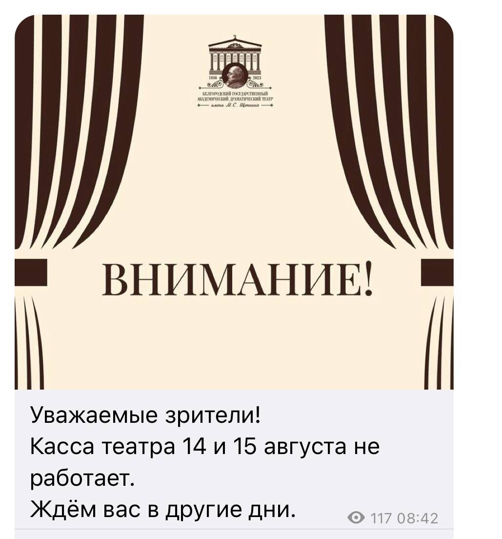 Драмтеатр и филармония сообщили о приостановке работы касс на сегодня и завтра. Также о временном закрытии сообщил ТРЦ «Сити Молл», Зоопарк, парк «Калейдоскоп» и ряд других объектов. Подписаться на 🗞🗞 | Поддержать бустом
