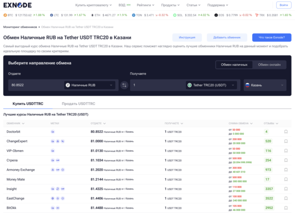 Лучшие криптообменники для покупки криптовалют в Казани на мониторинге Exnode