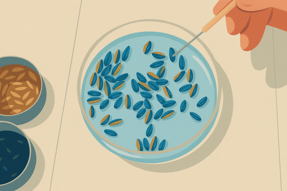 В Богучарском районе Воронежской области завершена уборка озимых культур с площади 36,5 тыс. га. Валовой сбор составил 80,8 тыс. тонн. Сейчас хозяйства занимаются засыпкой семенного материала, подработкой и отправкой партий на предварительный анализ. Всего аграрии уже засыпали 9521 тонну семян озимых, что превышает план на 19%. В числе подготовленных — 33 сорта озимой мягкой пшеницы и 4 сорта озимой твёрдой, включая 140 тонн оригинальных семян (ЭС), 4802 тонны репродукции РС1, 2522 тонны РС2 и 1991 тонну РС3. Полный анализ уже проведён на 2732 тоннах, работа продолжается. Предварительная проверка качества семян включает определение их жизнеспособности по влажности и с использованием метода окрашивания индигокармином. Принцип метода прост: живая плазма клеток зародыша не пропускает анилиновые красители (индигокармин, кислый фуксин), тогда как мёртвые ткани легко окрашиваются.