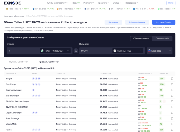 Рейтинг лучших обменников для продажи USDT в Краснодаре на мониторинге Exnode