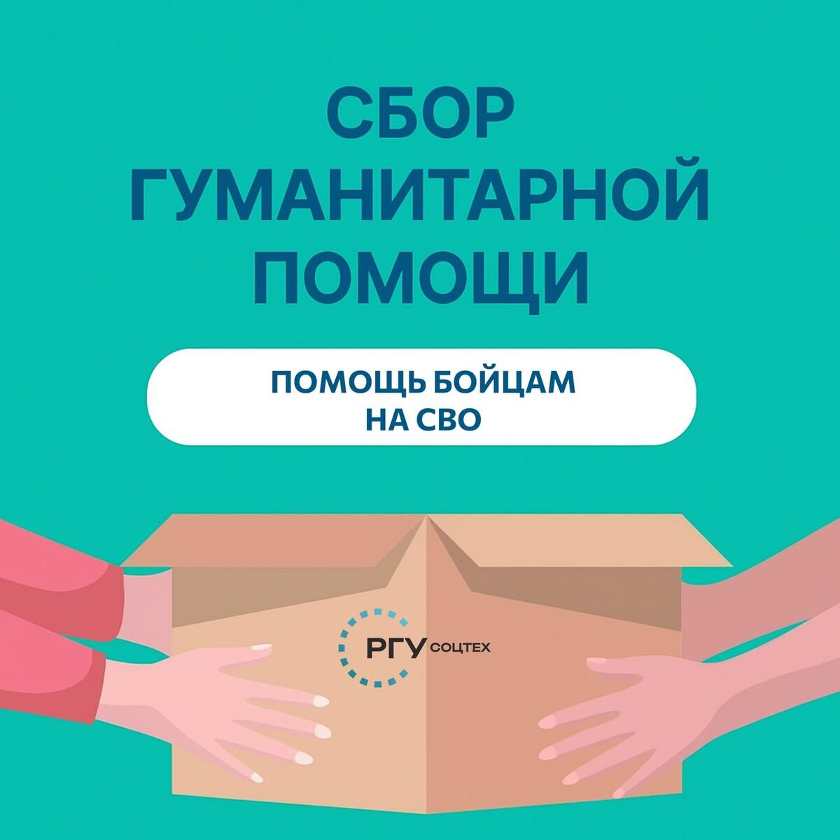 📦 Сбор гуманитарной помощи Патриотический клуб РГУ СоцТех собирает необходимые вещи для бойцов СВО, военных, находящихся в госпитале. Что принести: Противодронные сетки, энергетические батончики, окопные свечи, маскировочные сети, флисовая одежда и нательное бельё, каталитические грелки, печи для приготовления пищи, генераторы и бензопилы, детекторы частот и средства РЭБ. 🕔 Время сдачи: с понедельника по пятницу, с 11:00-16:00. 📍 Место: кабинет 114 «молодежная политика». @rgusocteh #ЯГоржусьРГУСоцТех #ЯГоржусь