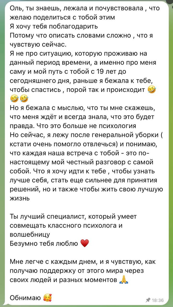 Иногда в жизни наступает момент, когда хочется сказать спасибо человеку, благодаря которому мы меняемся изнутри. 🔴 Сегодня хочу поделиться такой искренней историей благодарности (смотрите скрин сообщения). ‼️ Живите честно с собой, ищите своего волшебника и помните: каждый шаг на пути к себе — это уже победа. Для записи на сеанс 👉 @o_belan ————— А что для вас значит «жить своей лучшей жизнью»?