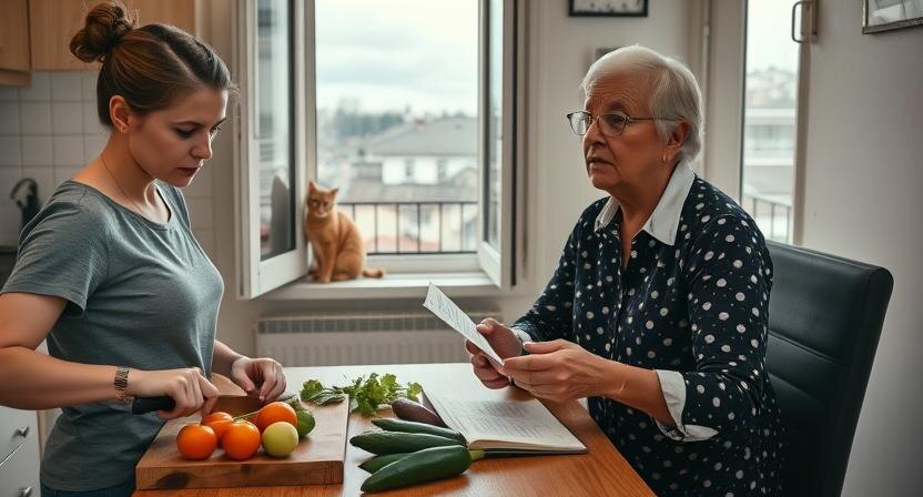 На пороге кухни появилась Людмила Сергеевна — вежливо можно было бы назвать её «элегантной женщиной в возрасте», но в душе Алиса про себя называла её просто «тучей в юбке». Сегодня туча была особенно плотной: блузка в мелкий горох, чётко подогнанный воротничок, запах духов с приторной ноткой ванили и что-то в её походке — настороженное, как у человека, который пришёл не в гости, а на инспекцию.